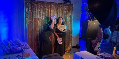 2 hours of unlimited use of photo booth, photo booth attendant, fabric backdrop, double prints of 2"X6" photo strips, color/black & white prints, basic custom graphic design on prints, prop box, set-up and breakdown, and delivery.